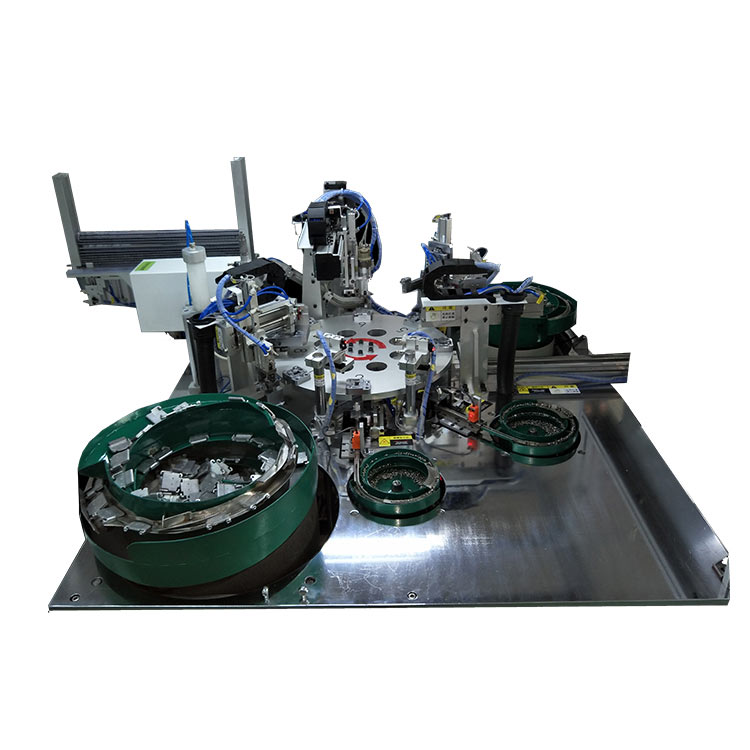 2、工作時(shí),治具在升降臺(tái)上,人工將產(chǎn)品放入治具,治具流入設(shè)備分別完成鎖螺絲、貼碼、掃碼、點(diǎn)膠等工作;