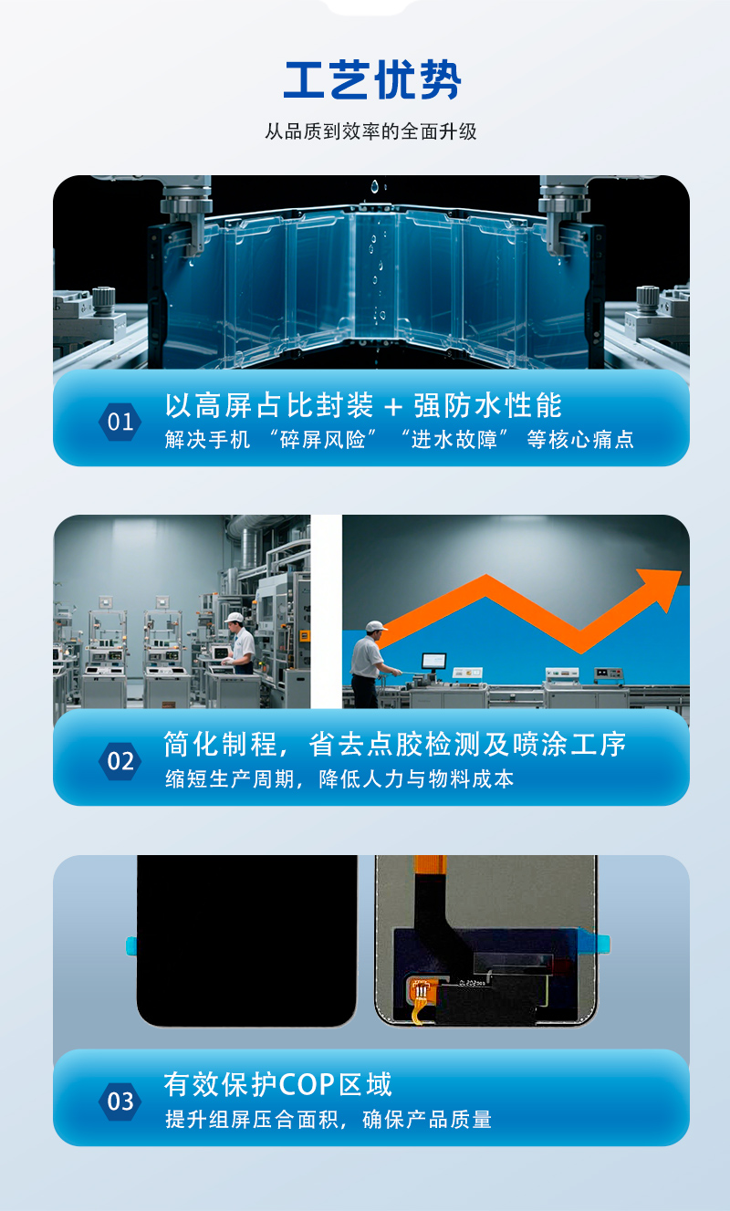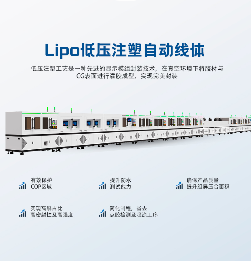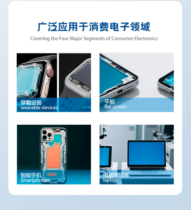 專為手機(jī)、穿戴設(shè)備、平板電腦及筆記本等消費(fèi)電子領(lǐng)域打造,以真空環(huán)境灌膠成型技術(shù),實(shí)現(xiàn)顯示模組的完美封裝...