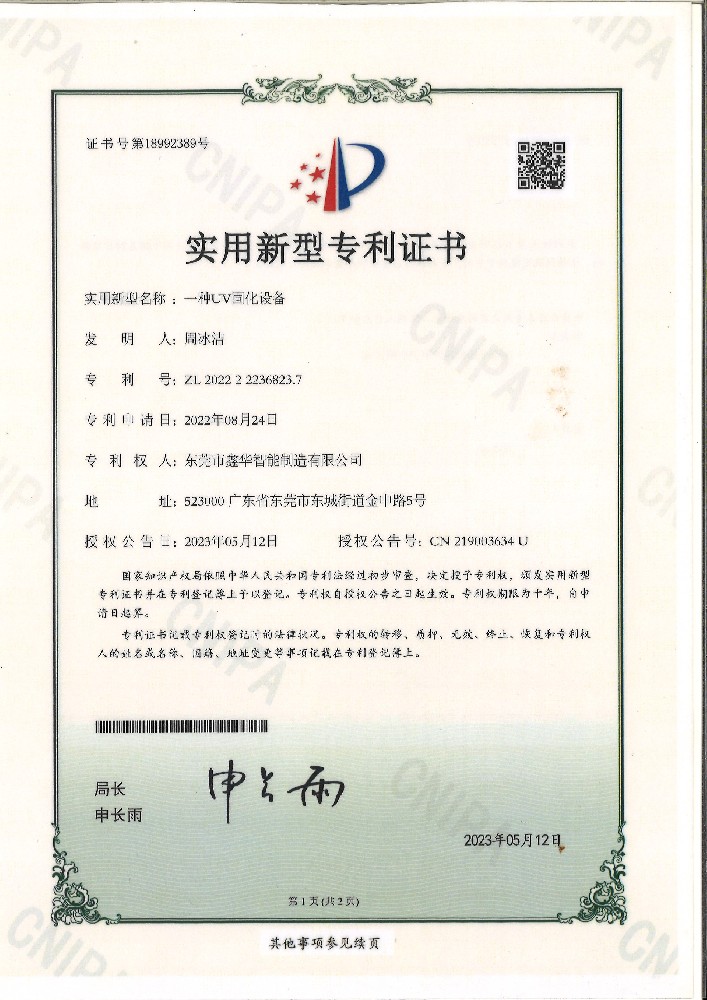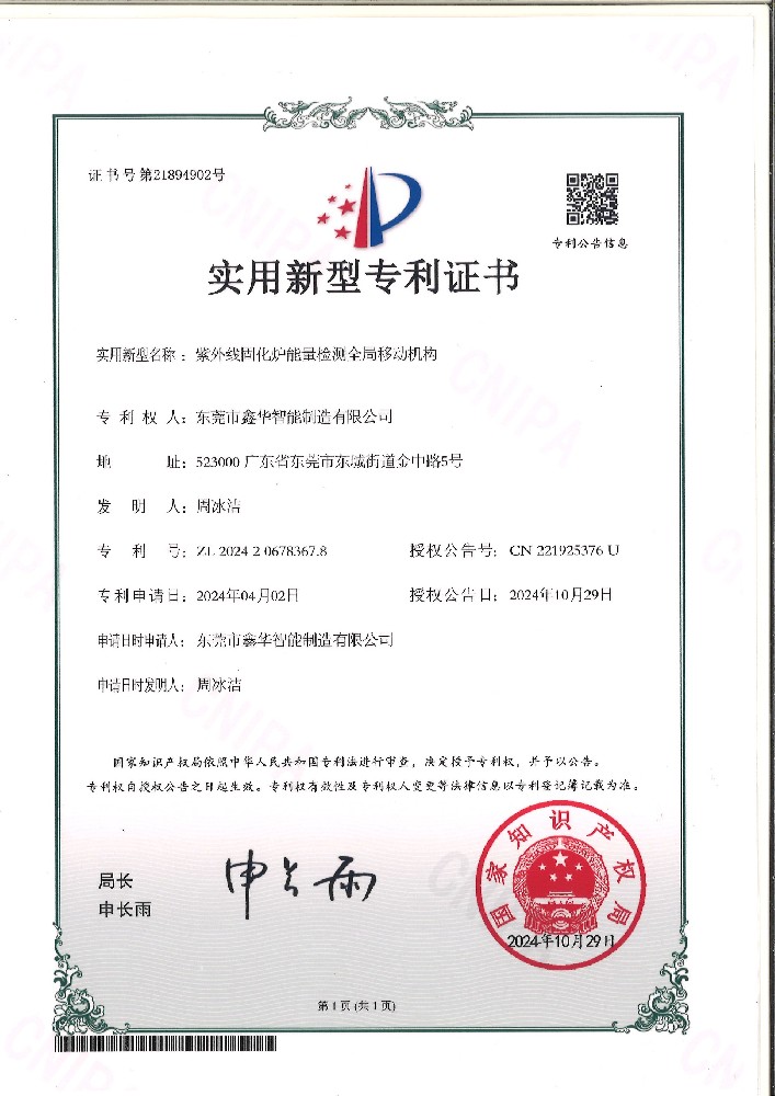 紫外光固化爐能量檢測(cè)全局移動(dòng)機(jī)構(gòu)證書(shū)