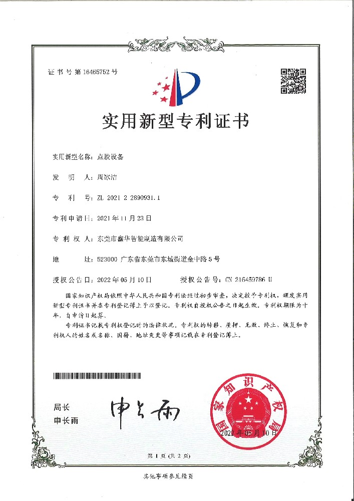 點(diǎn)膠閥機(jī)點(diǎn)膠機(jī)裝置證書(shū)