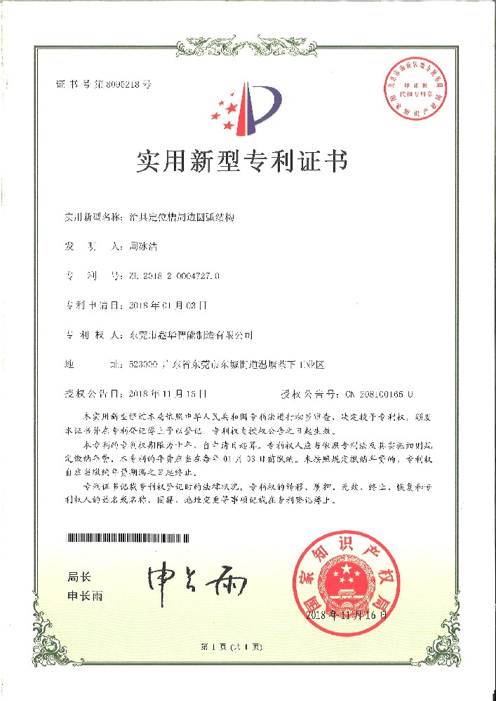 治具定位槽圓弧結(jié)構(gòu)證書(shū)