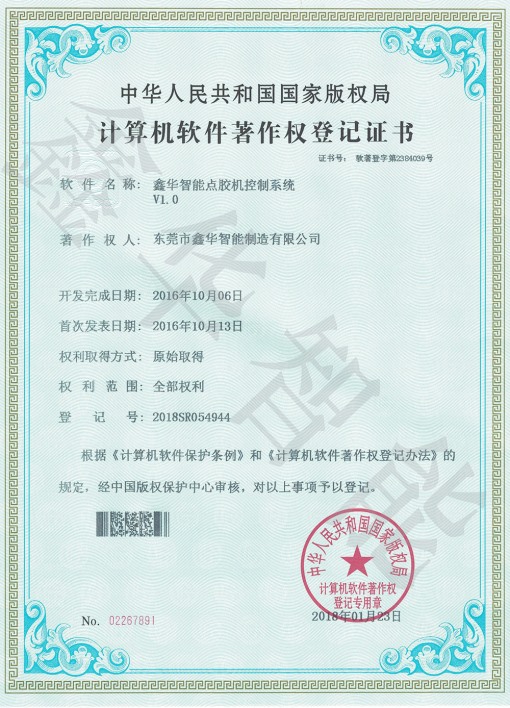 點(diǎn)膠機(jī)控制系統(tǒng)著作權(quán)