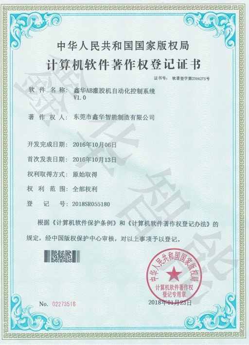 多軸自動(dòng)點(diǎn)膠機(jī)證書(shū)